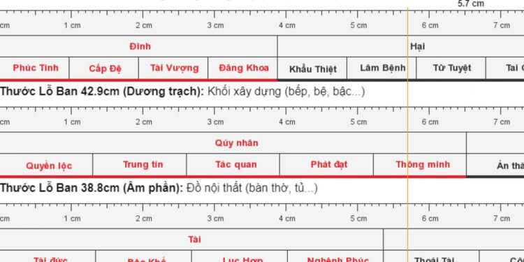 Trên thước Lỗ Ban 42.9cm sẽ có 8 cung là Tài – Bệnh – Ly – Nghĩa – Quan – Kiếp – Hại – Bản, trong đó bạn nên chọn kích thước của 4 cung tốt là Tài – Nghĩa – Quan – Bản.