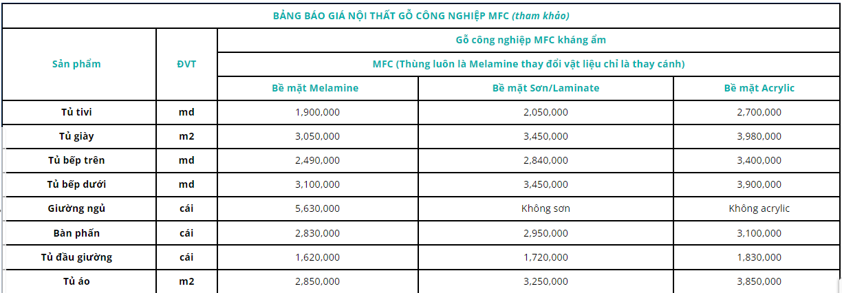 2. Báo giá thi công nội thất gỗ công nghiệp trọn gói