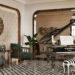 Trong phong cách nội thất Đông Dương, gạch bông, gạch nung thường được sử dụng để lát sàn đã tạo nên vẻ đẹp sang trọng nhưng không kém phần tinh tế cho không gian.